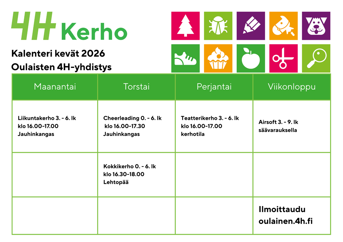 Tervetuloa ilmoittautumaan Oulaisten 4H-yhdistyksen kerhoihin!